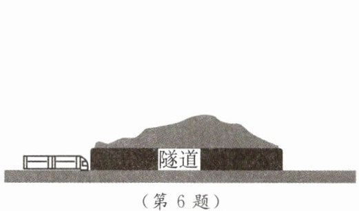 6. 如图所示,一列长360 m的火车以108 km/h的速度匀速驶过隧道,测得火车完全通过隧道需要102 s。火车的速度108 km/h=