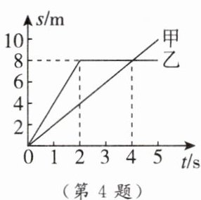 ① $ 2~4 \, s $ 内,乙做匀速直线运动;②第 $ 4 \, s $ 时,甲、乙两物体的速度相等;③ $ 0~4 \, s $ 内,乙的平均速度为 $ 2 \, m/s $;④第 $ 3 \, s $ 时,甲在乙的后方。