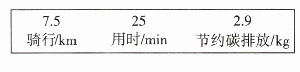 (1) 已知骑行路程 $ s = 7.5 \, km $,用时 $ t = 25 \, min = \frac{25}{60} \, h = \frac{5}{12} \, h $,平均速度 $ v = \frac{s}{t} = \frac{7.5 \, km}{\frac{5}{12} \, h} = 18 \, km/h $。