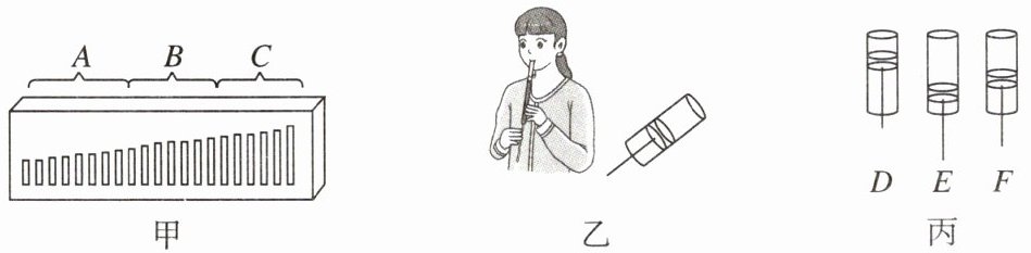 振动而产生的。如图丙所示,D、E、F对应活塞在管中不同位置,用嘴吹管的上端能分别吹出“do(1)”“re(2)”“mi(3)”三个音阶,则“do(1)”这个音阶与______E