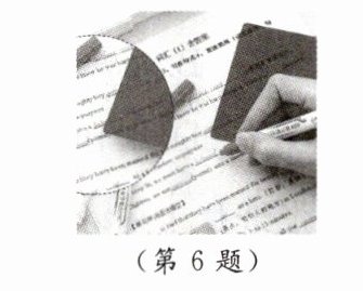6. 国庆复习时,小明在白纸上写上黑色的错题、红色的答案,找一块红色的透明塑料片遮盖在错题上,如图所示,此时能看到