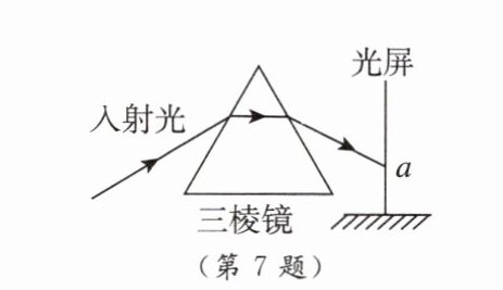 7. 如图所示,一束红光经三棱镜后发生偏折,在白色光屏上 a 点处形成一个红色光斑,保持入射光位置、方向及三棱镜位置不变。