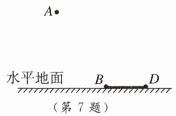 7. 如图所示,在路灯的照射下,地面上出现了竹竿的影子 $BD$,$A$ 点表示路灯的位置,请画出竖立在地面上的竹竿 $BC$。(保留作图痕迹)