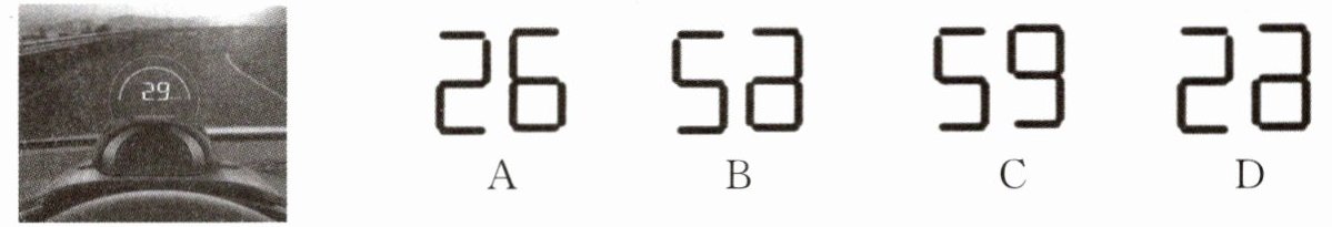 9. (跨学科 日常生活 2024·常州期中)为避免司机低头观察汽车仪表、忽略路况而造成事故,厂商开发出一种抬头显示器。抬头显示器水平安装在驾驶台上,显示面水平朝上,司机平视,借助透明挡风玻璃看到显示的像。如图所示,司机看到了数字;则在相同角度,司机看到水平显示面上显示的图形应是 (