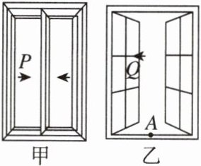 (填“随”或“不随”)窗平移;若将图乙 $ Q $ 窗户从关闭状态向外打开到 $ 90^{\circ} $,则窗框上的 $ A $ 点与 $ A $ 点在 $ Q $ 窗户中的像之间距离将变大