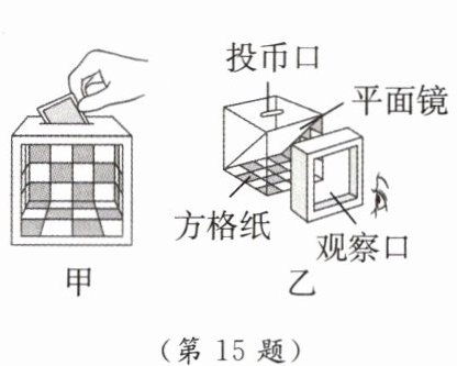 15. (新考法 小制作 2024·南京江宁区期中)小清用正方体纸箱、黑白方格纸、平面镜等器材制成如图所示的“储币魔箱”。