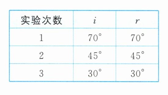(3) 改变光束入射的角度多做几次实验,测量$ON两侧的i和r$,将数据记录在上表中,根据数据得出的结论是