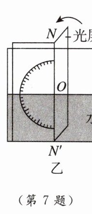 7. [2024·南京鼓楼区期中] 某小组选用了图甲中的光源、水、水槽、带刻度的可折转光屏(如图乙所示)等器材,用于完成探究光从空气射入水中时的折射特点。