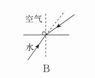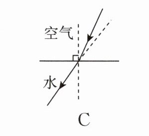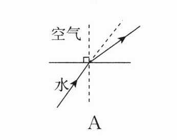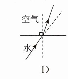 4. 2024·泰州海陵区月考新趋势真实情境 如图所示,射水鱼观察到停歇在水面上方的猎物后,会从口中喷射出水柱,将小虫击落到水中吃掉。下列能反映它在水下看到水面上小虫时的光路图的是(