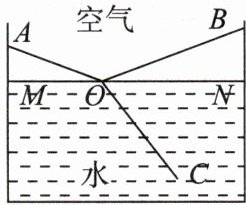 2. 因为光从空气斜射入水中,折射角小于入射角,所以在法线右侧的水中画出折射光线,使折射光线与法线的夹角γ小于30°。