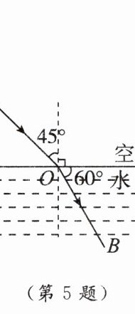 5. 如图所示为一束光从空气斜射入水中的部分光路图,则图中折射角的大小为