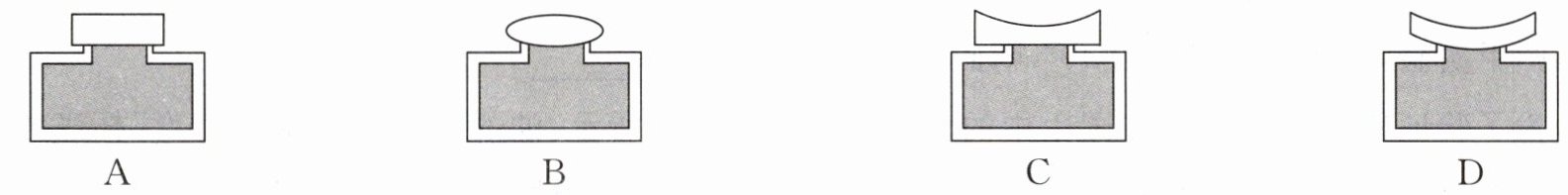 2. 跨学科·日常生活香水的主要成分是酒精,很多人喜欢在汽车的仪表台上放置香水,其实这是非常危险的。如图所示的四个香水瓶设计方案中顶部的透明玻璃瓶盖形状各异,其中在阳光照射下最容易引发火灾的是(