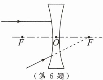 6. 请在图中画出光线经过凹透镜后的光路图(F为焦点)。