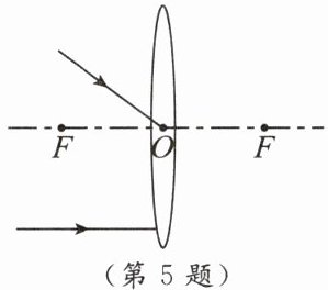 5. 如图所示,O为凸透镜的光心,F为凸透镜的焦点,请分别画出两条入射光线通过凸透镜后的折射光线。