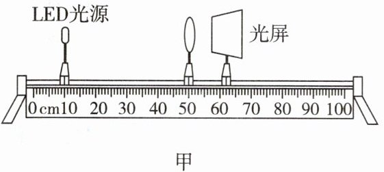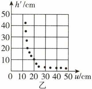 2. [2024·无锡江阴期中]如图甲所示是“探究凸透镜成像规律”的实验装置,小伊用LED光源代替蜡烛进行了实验探究,LED光源的高度h= 10cm。小伊经过认真测量,记录了像高h'和物距u的数据,在坐标系中描出了像高h'和物距u的对应点,如图乙所示。则下列说法正确的是(