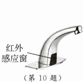 10. (教材习题改编题)如图所示是一种常见的红外感应水龙头,当手对着红外感应窗时,水会自动流出,使用该水龙头时,感应窗发出的红外线照射到手上发生了