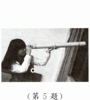 5. 如图所示是某同学用由两组凸透镜自制的望远镜观察远处景物的图片。关于这个望远镜,下列说法不正确的是(