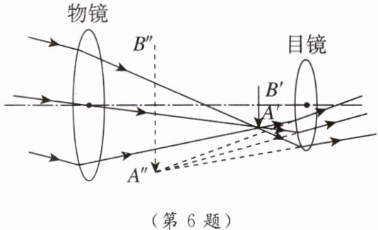 6. [2024·镇江丹阳期中] 眼睛通过望远镜观察远处的物体AB(物体AB未画出),如图所示是望远镜的成像原理,下列关于望远镜的说法正确的是(
