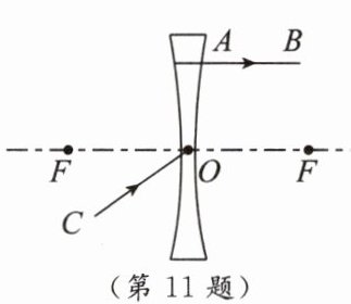 11. 如图所示,请分别画出 $ AB $ 的入射光线和 $ CO $ 的折射光线。