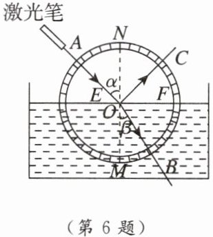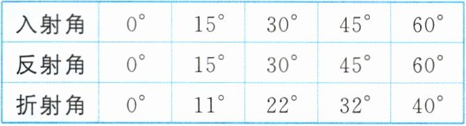 6. 如图所示是小明探究光的反射与折射规律的实验装置。通过多次实验将测得的数据记录在下表中。