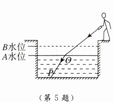 5. [2024·连云港灌云期中] 如图所示,OP为手电筒发出的一条光线射入池中的折射光线。若光的入射方向不变,当向池中加水到B水位时,画出这条光线的折射光线O'P'的大致位置。