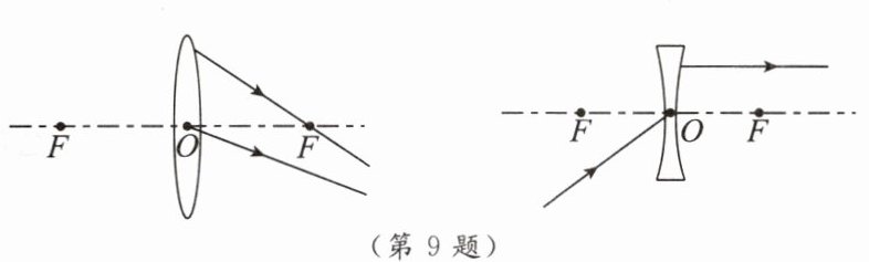 9. 画出图中折射光线的入射光线或入射光线的折射光线。