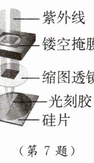 7. [2024·无锡梁溪区期中]光刻技术是现代半导体集成电路的关键一环,其工作原理如图所示。光源发出强紫外光,调整镂空掩膜版和缩图透镜之间的距离,使光通过二者后,恰好能在硅片上成清晰的像,从而实现纳米级集成电路的“雕刻”,下列说法错误的是 (