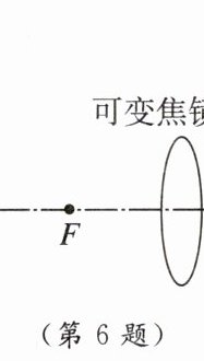 6. [2024·常州武进区期中]为满足城市治安防控的需要,很多公众聚集地区安装了 $ 360^{\circ} $ 高清摄像头,其镜头的功能类似于人眼睛的晶状体,焦距可以调节。它的像距几乎不变,如图所示,某人在成像板上已经成清晰的像(未画出),此时镜头的焦点在 $ F $ 处,在监控此人的过程中(该人在成像板上的像始终保持清晰),下列说法错误的是 (