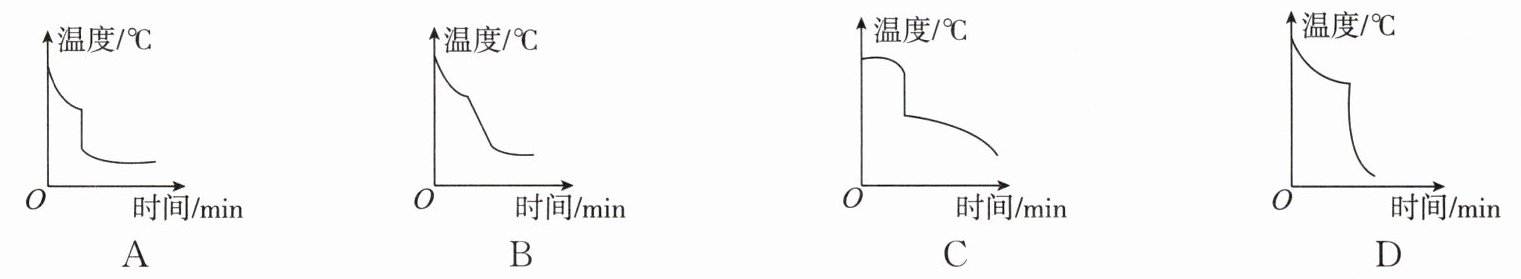1. [2024·南通期中] 小明从热水瓶中倒出半杯热水,一段时间后发现水仍很烫,于是又缓慢倒入一些冷水,水温下降到适宜饮用的温度。整个过程中水的温度随时间变化的图像可能是 (