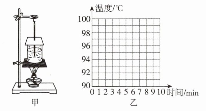 (2)调整好器材后,用酒精灯给水加热,在水温升高到90℃后,每隔1min记录一次温度,直到水沸腾并持续一段时间。将测得的数据记录在如上表格中,请根据表格数据在图乙中描点并画出水沸腾前后温度与时间的关系曲线。
