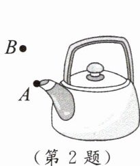 2. (教材活动改编题)小明用如图所示的水壶烧水,水沸腾后,壶嘴周围有“白气”产生,其中A、B两处有一处“白气”较浓。下列关于“白气”的分析中正确的是(