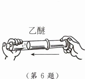 6. 如图所示,取一支大注射器,拉动活塞使注射器里吸进一些乙醚,取下针头,用橡皮帽把注射器的小孔堵住。向外拉动活塞到一定程度时,注射器里的液态乙醚消失,这是