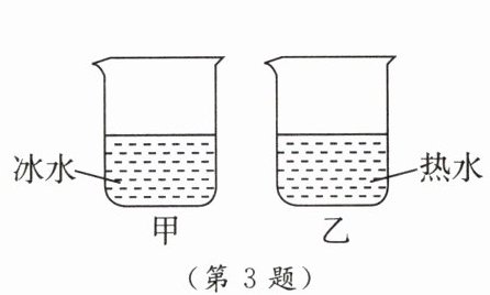 3. [2024·盐城滨海二模]暑假,小江在两只相同的透明烧杯中分别倒入冰水和热水(如图甲、乙所示),一会儿发现两只烧杯的杯壁上都出现了小水珠。关于小水珠出现的位置,下列说法正确的是(