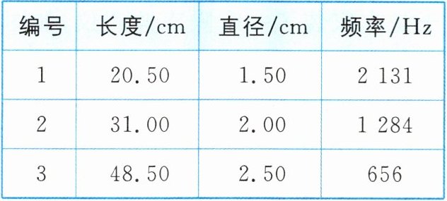|编号|长度/cm|直径/cm|频率/Hz|