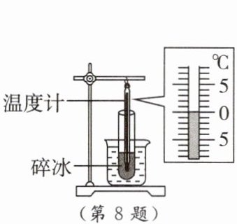 8. [2024·南通如东模拟] 用如图所示的装置探究冰的熔化特点,将装有适量碎冰的试管置于烧杯内的温水中,使用“碎冰”的好处,除了可以使冰受热均匀,还有