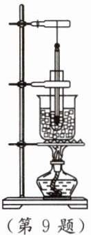 9. 如图所示,用酒精灯给烧杯加热,烧杯和试管中都装有冰水混合物。在烧杯内还有冰剩余时,下列说法中正确的是(