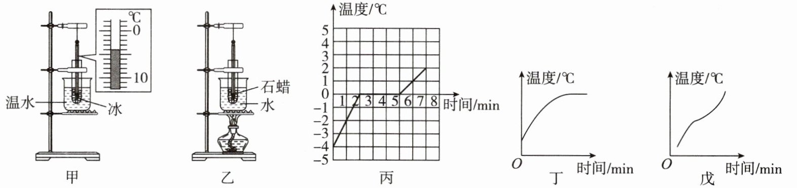 。(4) 小刚也用冰、石蜡和相同的实验装置完成了实验,他根据数据画出冰的温度随时间变化的图像,如图戊所示,则小刚实验中存在的问题可能是