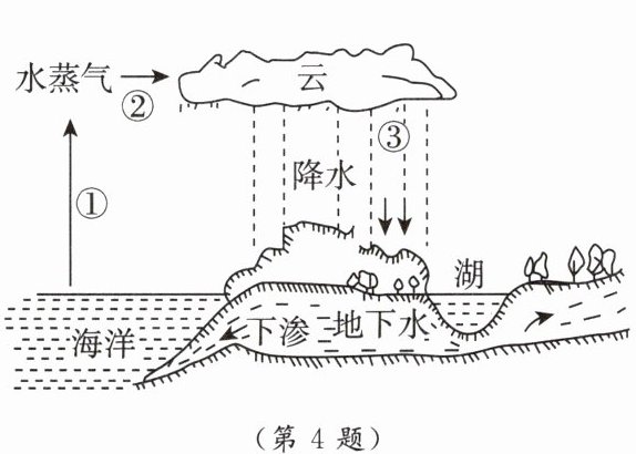 4. [2024·无锡梁溪区模拟]如图所示是水循环过程的示意图,下列关于水循环的说法正确的是(