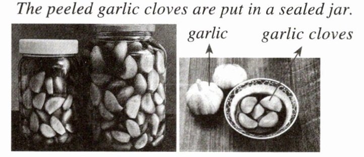 . Put the peeled garlic cloves in a sealed jar, bottle, or other containers. Then pour vinegar, seal the top, and put it in a cold place for some days. The vinegar is Laba vinegar. Laba garlic and Laba vinegar with dumplings are traditional foods for the Chinese New Year.A. Making Laba garlic is very simple