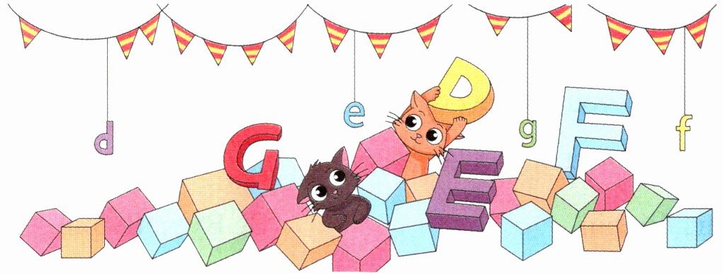 一 找出图中隐藏的字母,并按字母表顺序规范地书写在四线三格上。