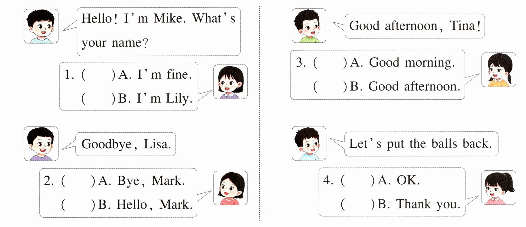 )2. My name is Amy.任务二:根据对话内容,选择正确的答案。