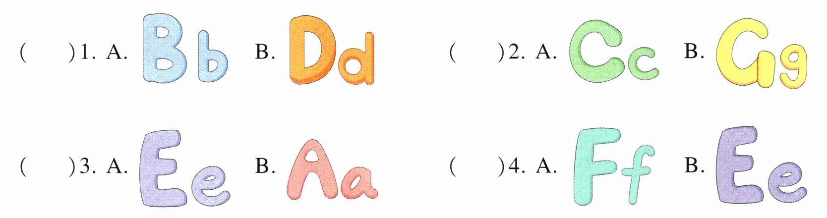 一 英语课上,同学们正在玩字母游戏。听录音,选出你所听到的字母。