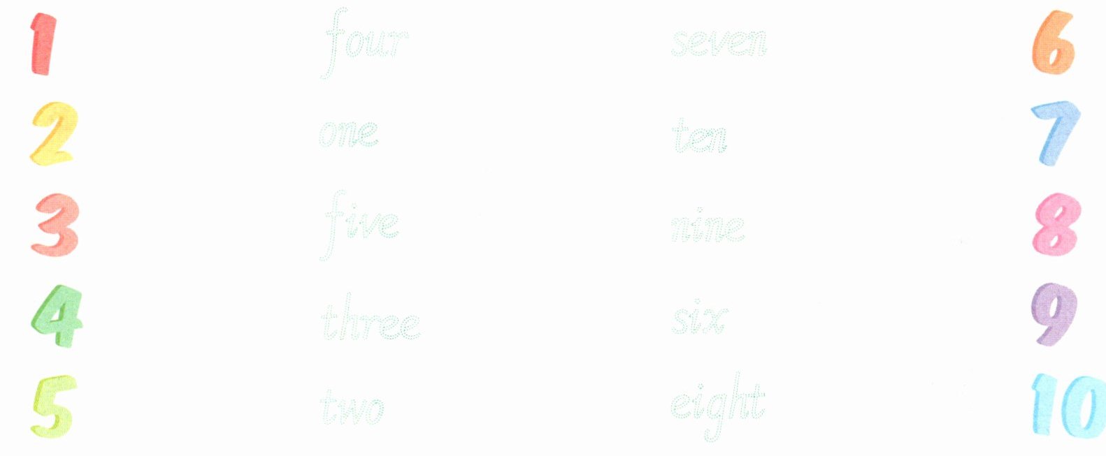 1—one 2—two 3—three 4—four 5—five 6—six 7—seven 8—eight 9—nine 10—ten