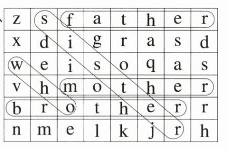 一 根据中文提示,在字母表格中圈出相应的单词。(可横着、竖着或斜着圈)