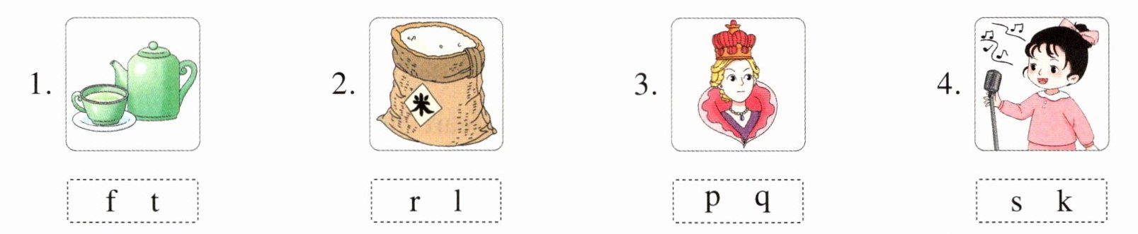 二 根据图片提示,从方框中选出正确的字母写在横线上,补全单词。