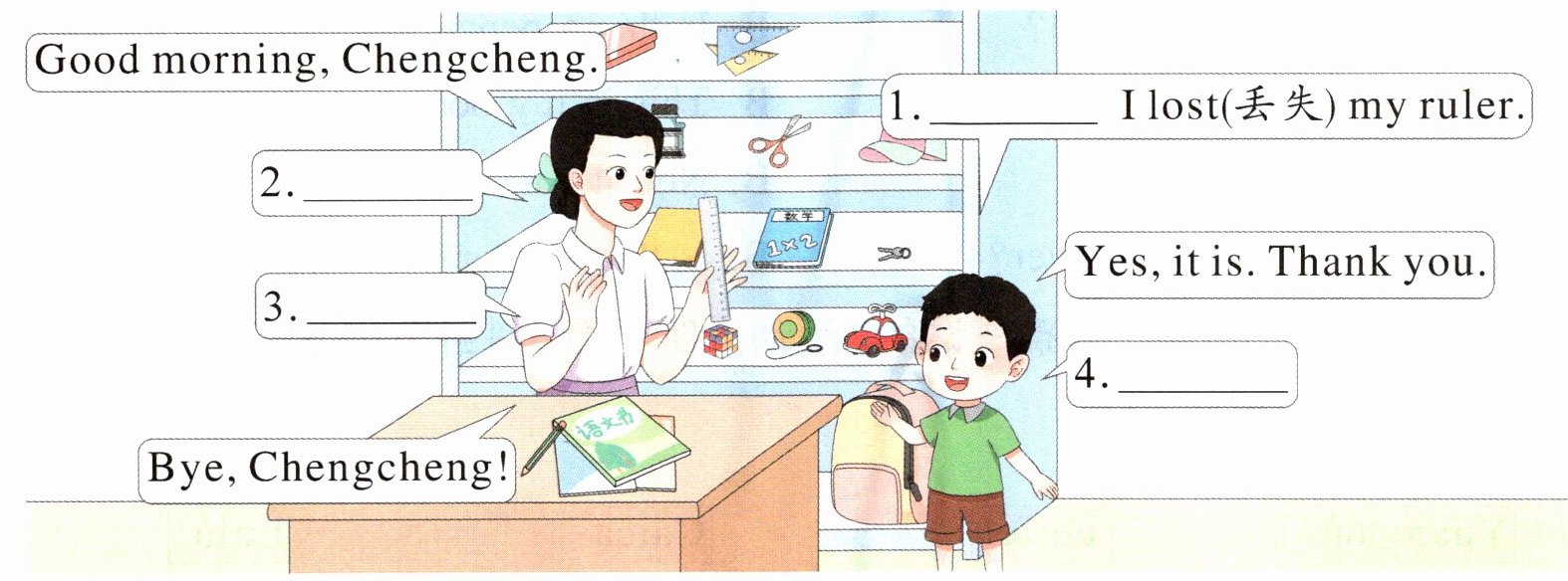 七 新趋势 语用 成成正在失物招领处,他想找回自己丢失的物品。从方框中选择正确的选项补全对话。