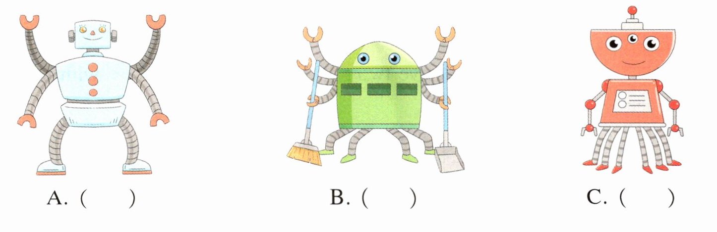 四 老师在幻灯片上展示了三张机器人图片。听录音,在正确的图片下打“√”。