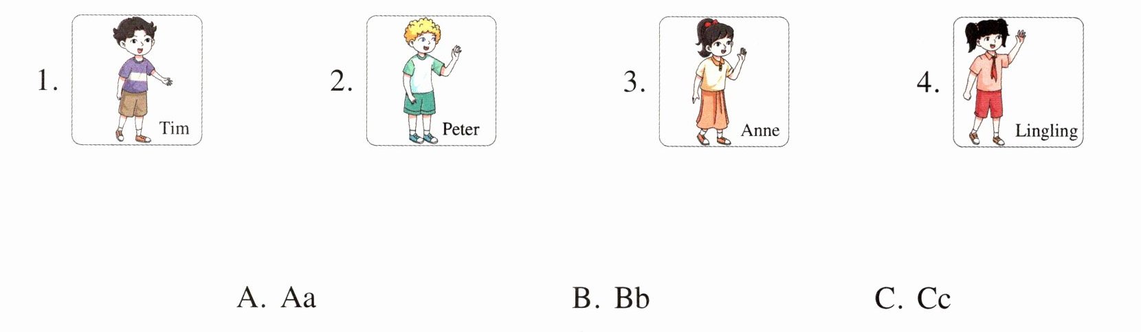 二 李老师想了解下面四个小朋友喜欢什么字母。听录音,连一连。