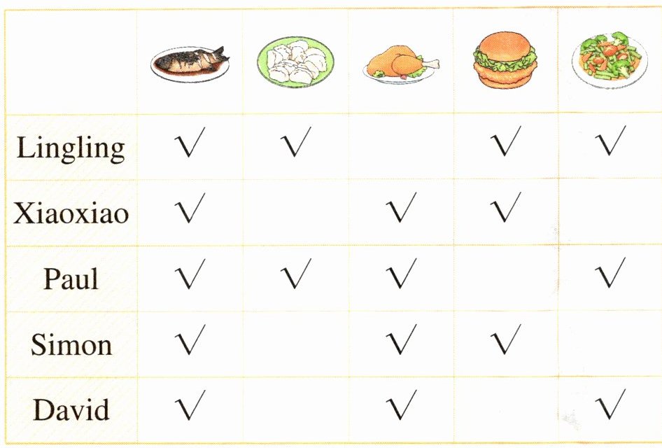 元元调查了同学们喜欢的美食。