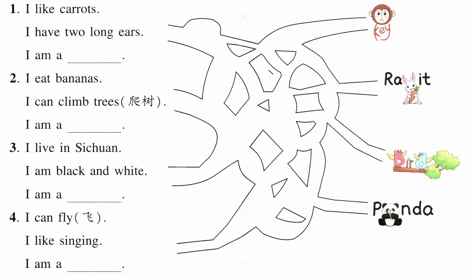 五、新趋势 新题型 猜一猜,写一写,连一连。